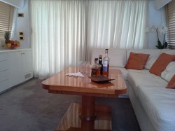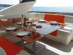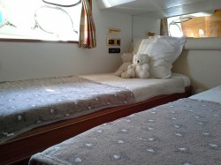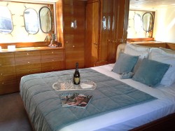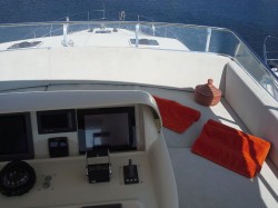Ideal family or first time yacht, easy maintenance. Excellent sea-behaviour, speeds and range for extensive cruising Easy to manouver : bow & stern thrusters, wheelhouse door on side deck, 3rd command on aft deck Superb deck area Centrally located Master Cabin with own companion way Open galley with bar counter. Crew dinette in wheelhouse Extra multi-purpose luggage / storage / laundry room opposite to portside twin cabin and day toilet in salon |