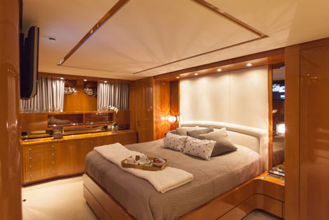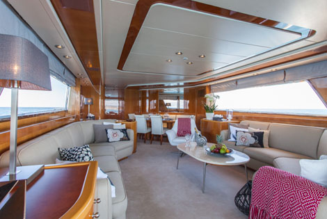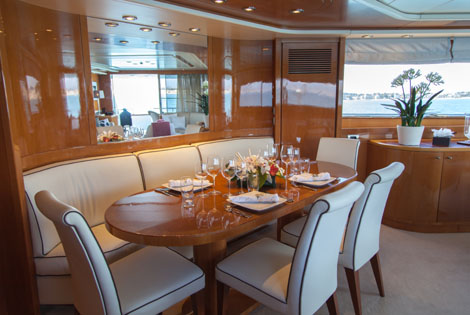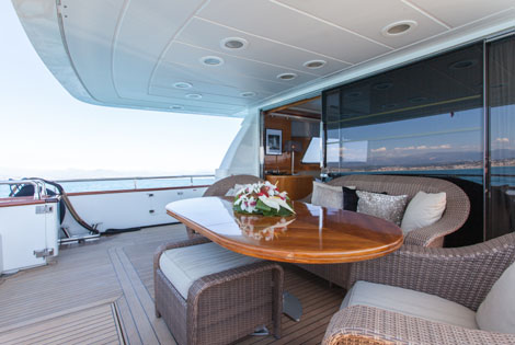 Her well-appointed sundeck and inviting aft deck are ideal for cocktail parties As for business meetings, there are 2 comfortable settees facing each other in the salon and a dining table to work. Day toilet for visiting guests on main deck.