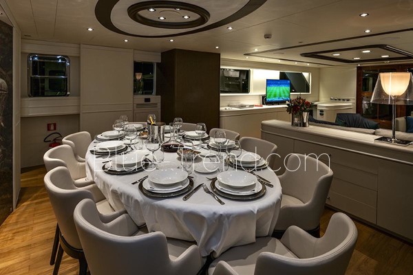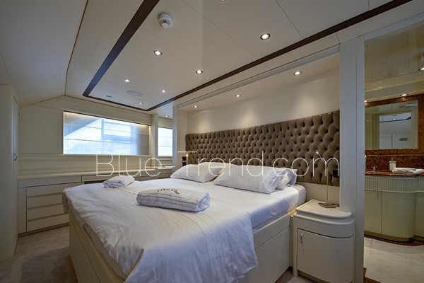 DON CIRO elegant airy salon has a 2m ceiling height. The comfortable lounge area is perfect for pre-dinner drinks. How about a formal dinner inside to celebrate a special occasion and enjoy Chef Lorenzo's culinary delights. DON CIRO Master Stateroom is located on main deck. It boats a king size bed, a settee, ensuite facility with a jacuzzi bath tub, washbasin, bidet and wc.